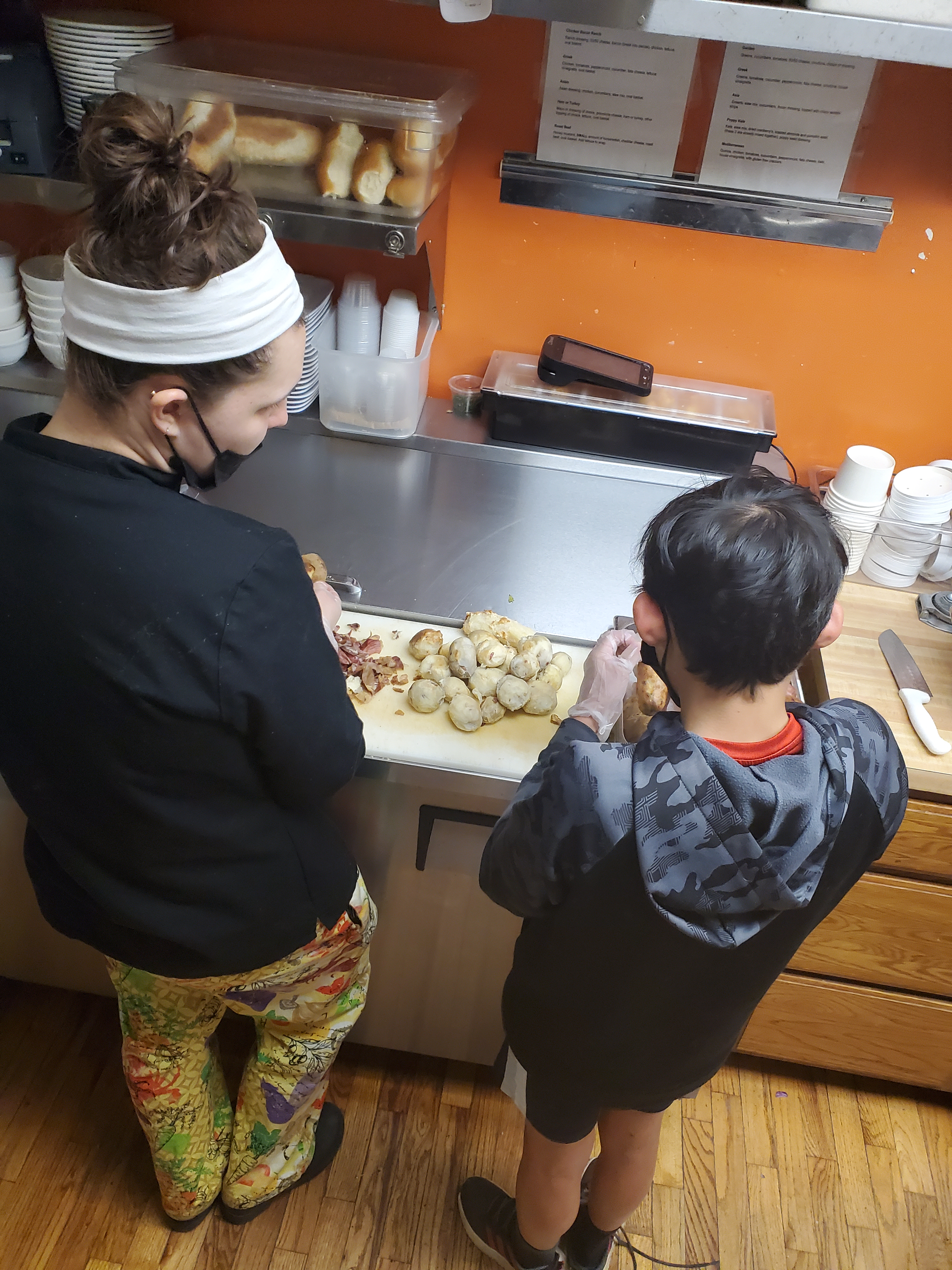 Today Isaiah worked all day scooping cookie dough (approximately 400 cookies) then cut potatoes for French fries and sliced some ham. And after that he had track practice, THEN soccer practice.